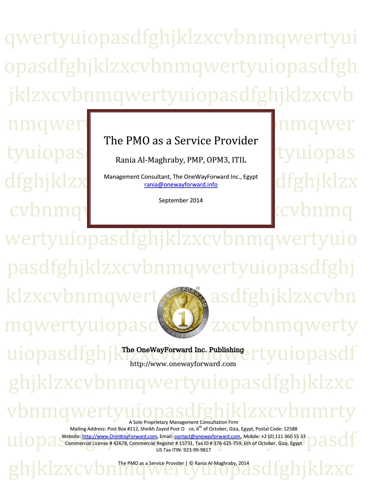 New Paper Published: The PMO as a Service Provider Check also our Amazon Kindle store for other publications